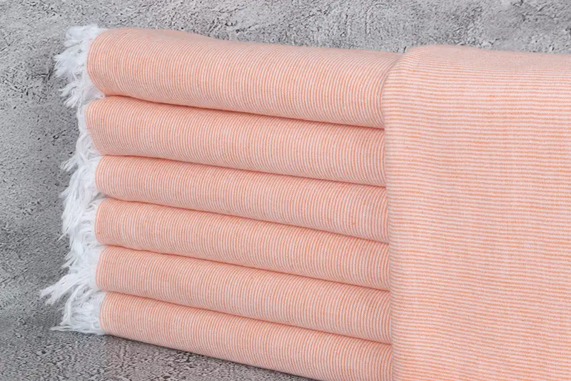 Gestreiftes Handtuch, Strandtuch aus orangefarbener Baumwolle, 40 x 71 Zoll