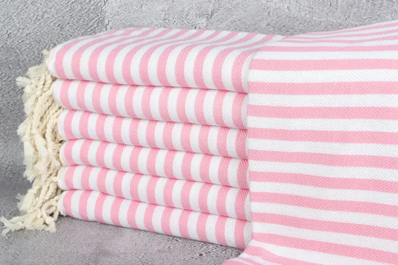 Türkisches Handtuch für den Strand, bestickt, rosa gestreift, 101,6 x 180 cm