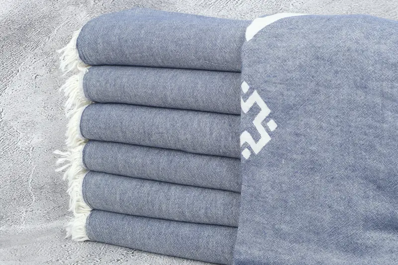Geschenk für Junggesellenabschied, geometrisches türkisches Strandtuch, marineblaue Bio-Baumwolle, 101,6 x 180,9 cm