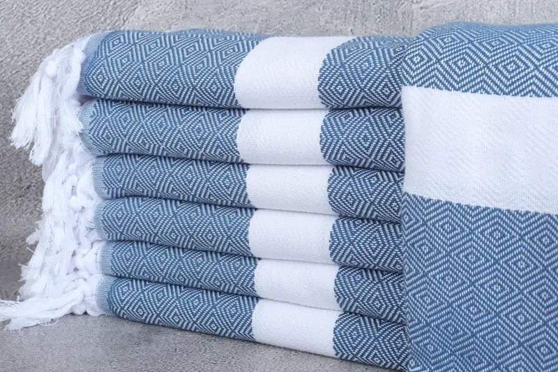 Personalisiertes türkisches Strandtuch, Petrolblau mit Beige, 71 x 40 Zoll