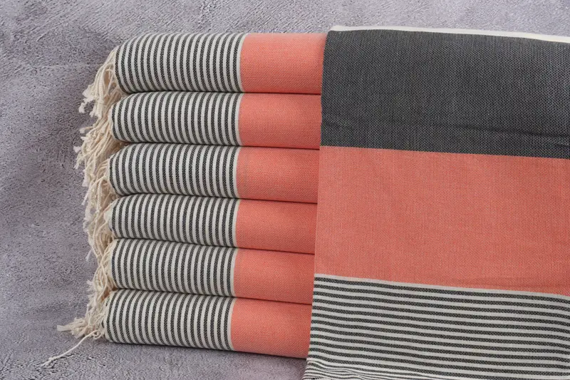 Bio-Strandtuch, Badetuch, orange-schwarz gestreiftes Peshtemal, 40 x 71 Zoll