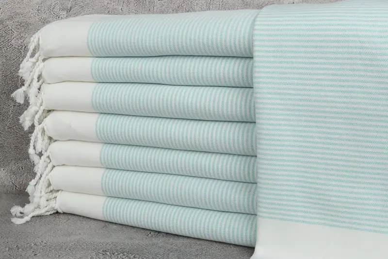 Handtuch mit Monogramm, Mint-Baumwolle, gestreift, 18 x 40 Zoll
