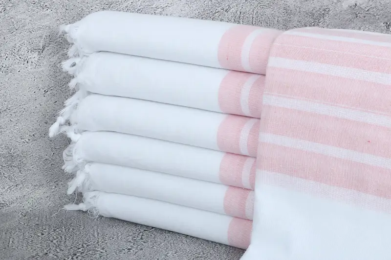Hellpuderrosa Baumwollhandtuch, gestreiftes Strandtuch, 40 x 71 Zoll