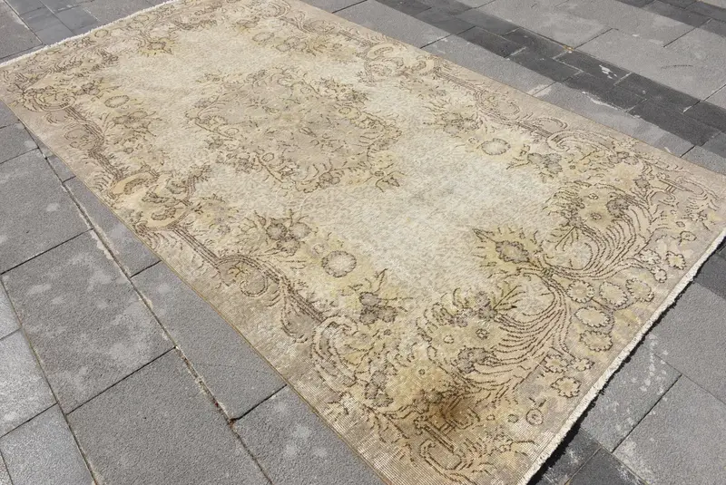 Vintage Türkischer Teppich, 5x9,3 ft großer Teppich, brauner Perserteppich
