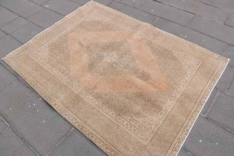4,3x5,7 ft Teppich, türkischer Teppich, Vintage brauner Wollteppich