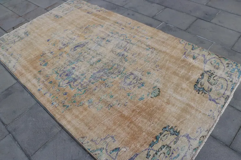 Türkischer 4,4x7,8 ft Teppich, Vintage Teppich, brauner Blumenteppich aus Wolle