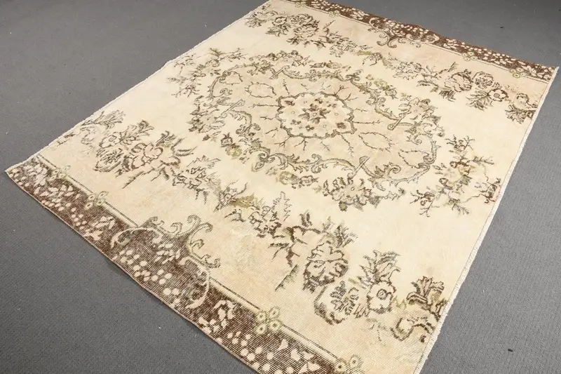 6,8x5,5 ft Vintage Teppich, türkischer Teppich, braun grüner massiver Wollteppich