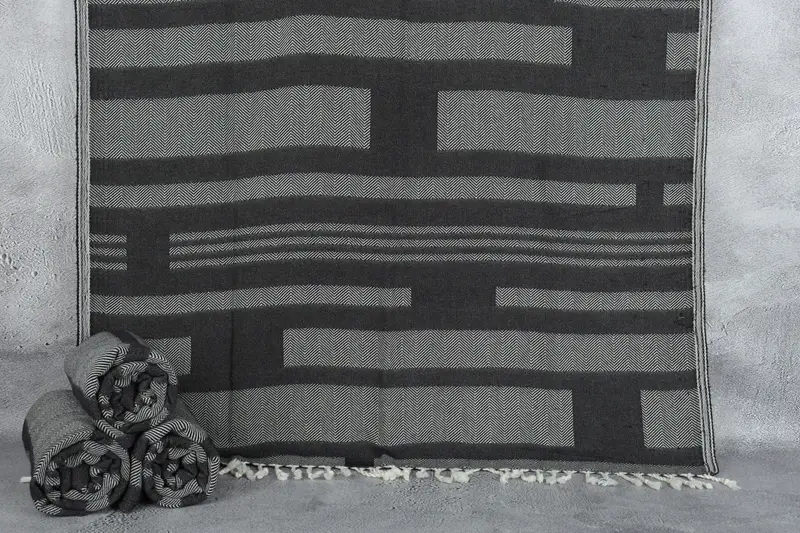 Türkische Handtücher für den Strand, monogrammiert, schwarzer Chevron, Beige, 38 x 67 Zoll