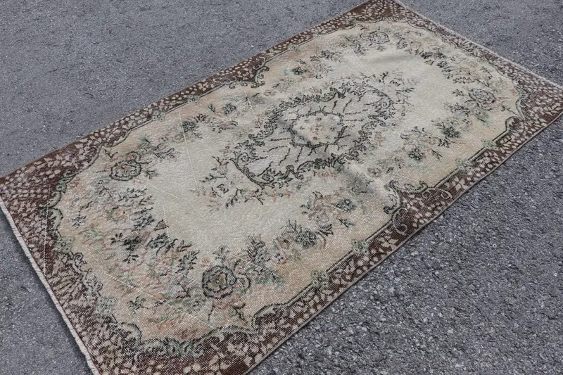 Türkischer Teppich, Fläche 3,8 x 6,8 Fuß, Teppich mit braunem Rand