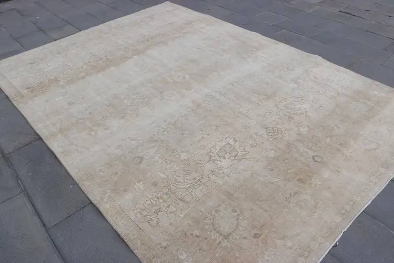 Vintage Teppich, Übergröße 7x10,3 ft türkischer Teppich, beige brauner persischer Wollteppich