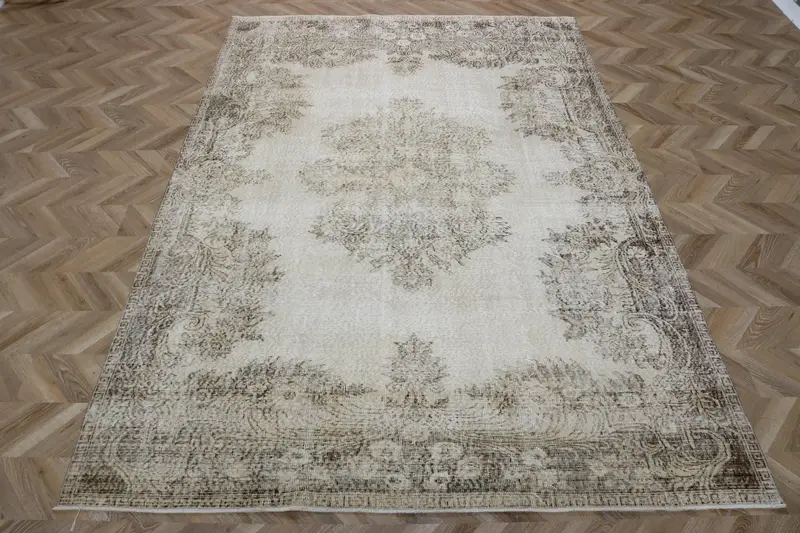 Vintage türkischer großer Teppich 6,8x9,8 ft, grauer Wollteppich