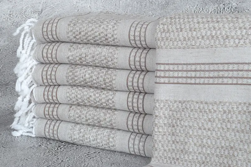 Dieses aus türkischer Bio-Baumwolle gefertigte Handtuch sorgt für außergewöhnliche Weichheit und Haltbarkeit und ist ein vielseitiges und vielseitiges Accessoire. Das Handtuch misst 90 x 180 Zentimeter (36 x 71 Zoll) mit einer Toleranz von 5 cm (2 Zoll) aufgrund handgewebter Techniken und bietet präzise Abmessungen mit inhärenter Flexibilität. Das Handtuch zeichnet sich durch sein Gewicht von 340 Gramm aus und garantiert leichte Tragbarkeit und Benutzerfreundlichkeit in verschiedenen Umgebungen.