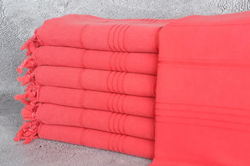 Die aus türkischer Bio-Baumwolle gefertigten Handtücher gewährleisten eine hervorragende Saugfähigkeit und Haltbarkeit. Sie zeichnen sich durch ihre Vielseitigkeit aus, messen 36 x 63 Zoll bzw. 90 x 160 Zentimeter und wiegen 290 Gramm. Durch das Handwebverfahren ergeben sich Toleranzen von bis zu 2,5 Zentimetern.