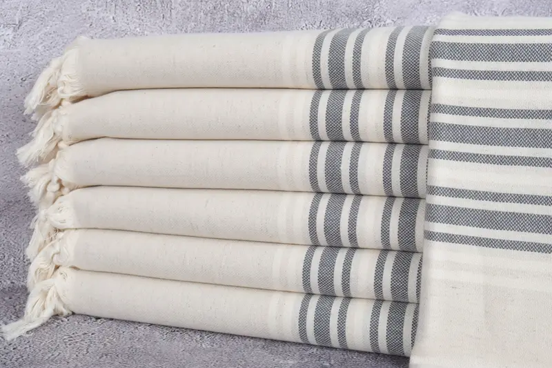 Die türkischen Bio-Handtücher zeichnen sich durch eine hohe Saugfähigkeit aus, was zu einem effizienten Feuchtigkeitstransport und einer schnellen Trocknung führt. Diese aus umweltfreundlicher türkischer Premium-Baumwolle gewebten Handtücher sorgen für Langlebigkeit und bleiben gleichzeitig sanft zur Haut. Jedes Handtuch misst 38 x 71 Zoll oder 95 x 180 Zentimeter und wiegt etwa 410 Gramm mit einer Handwebtoleranz von 2 Zoll oder 5 Zentimetern.