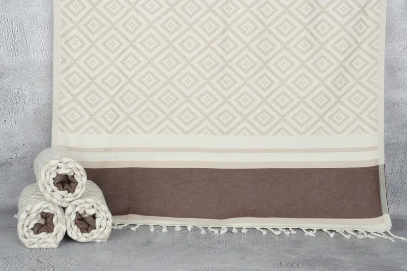 Dieses türkische Handtuch gewährleistet eine hohe Saugfähigkeit und besteht aus umweltfreundlicher, hochwertiger türkischer Baumwolle. Das Ergebnis ist ein leichtes und dennoch langlebiges Produkt mit den Maßen 36 x 69 Zoll oder 90 x 175 Zentimeter, mit einer Toleranz von bis zu 2 Zoll oder 5 Zentimetern aufgrund der Handwebtechnik. Mit einem Gewicht von 420 Gramm ist dieses Handtuch ideal für den mehrfachen Gebrauch und für optimale Weichheit vorgewaschen.