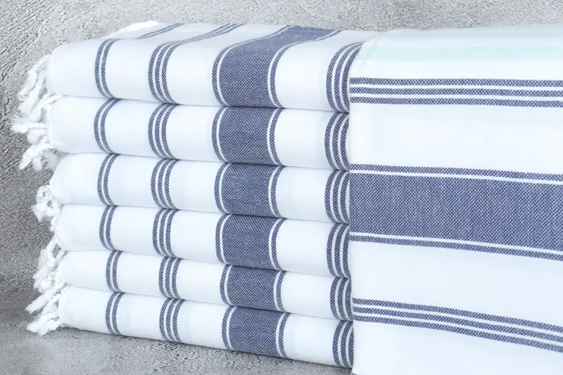 Umweltfreundliche Premium-Baumwolle aus der Türkei prägt die Faserzusammensetzung der handgefertigten Handtücher und sorgt für außergewöhnliche Saugfähigkeit und Haltbarkeit. Jedes sorgfältig handgewebte Handtuch misst genau 100 x 180 Zentimeter (40 x 71 Zoll) mit einer Toleranz von 2 Zoll oder 5 Zentimetern. Die Handtücher wiegen 300 Gramm und bieten eine perfekte Balance aus leichter Tragbarkeit und robustem Einsatz.
