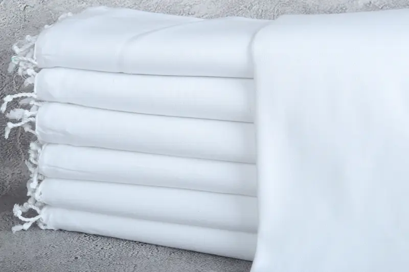 Die Basis dieser Handtücher ist türkische Bio-Baumwolle, die sich durch ihr geringes Gewicht und ihre hohe Saugfähigkeit auszeichnet und für Langlebigkeit und weiche Textur bei der Verwendung sorgt. Die Abmessungen dieser Handtücher betragen genau 40 x 71 Zoll oder 100 x 180 Zentimeter, mit einer Toleranz von 2 Zoll oder 5 Zentimetern aufgrund des Handwebverfahrens. Jedes Handtuch wiegt 300 Gramm und ist sorgfältig gewebt, um eine gleichmäßige Konsistenz zu gewährleisten.