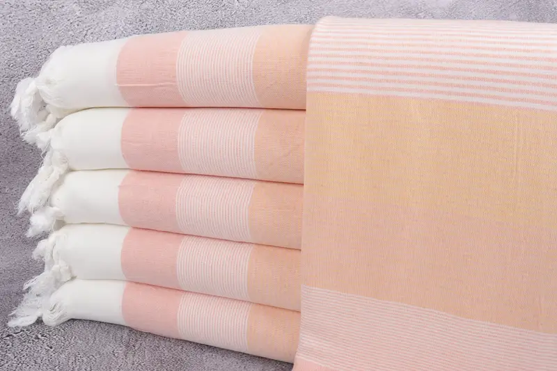 Handgefertigte türkische Handtücher und Decken zeichnen sich durch ihre organische türkische Baumwollfaserzusammensetzung aus, die eine hohe Saugfähigkeit und Haltbarkeit gewährleistet. Die Strandtücher und -decken haben die Maße 100 x 170 Zentimeter (40 x 67 Zoll) und ein Gewicht von 230 Gramm, was eine leichte Handwebtoleranz von bis zu 5 cm ermöglicht. Jedes Produkt kann für einen Mehrwert mit Stickereien personalisiert werden.