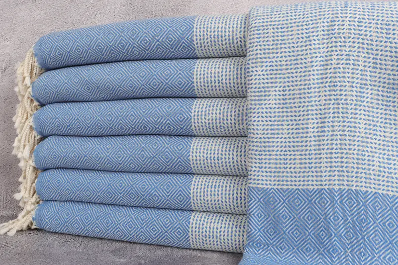 Dieses Pestemal-Handtuch besteht aus UMWELTFREUNDLICHER türkischer Premium-Baumwolle und weist eine bemerkenswerte Saugfähigkeit auf, die einen effizienten Feuchtigkeitstransport und eine schnelle Trocknung gewährleistet. Das Handtuch hat eine Abmessung von 40 x 71 Zoll oder 100 x 180 Zentimetern und wiegt 410 Gramm bei einer Webtoleranz von bis zu 5 Zentimetern. Diese handgewebten Handtücher können mit verfügbaren Stickoptionen, einschließlich Monogrammen, personalisiert werden. Vorgeschrumpft behalten sie ihre Größe und Form. Bestellungen für...