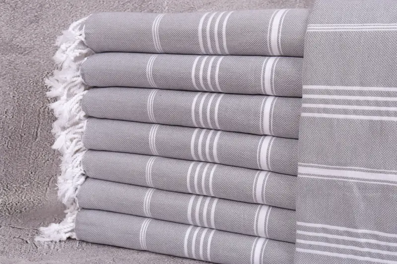 Strandtuch aus Bio-Baumwolle, gestreift, Beige, 40 x 71 Zoll
