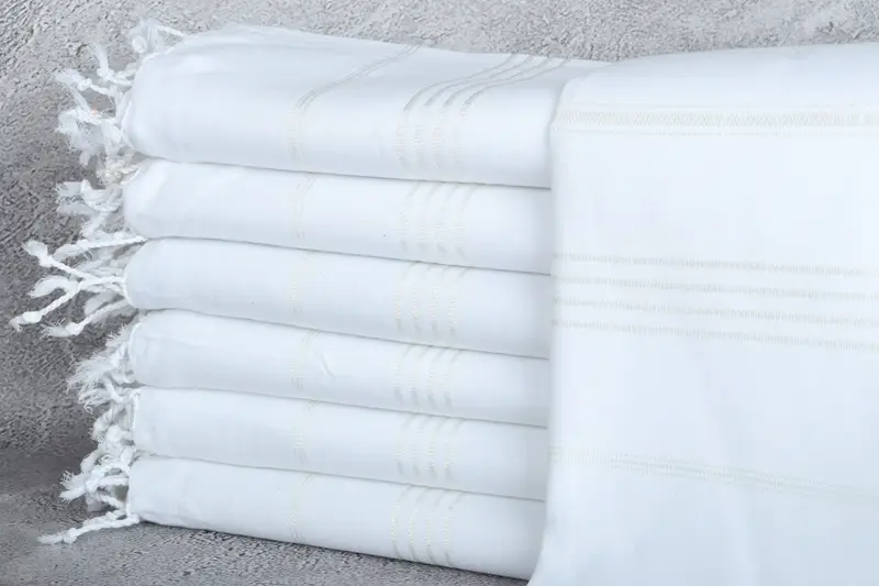 Gesticktes Strandtuch, personalisierte türkische Baumwolle, helle cremefarbene Streifen, 40 x 71 Zoll