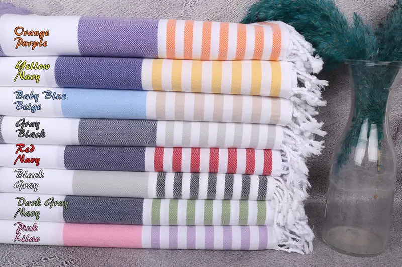 Strandtuch, Monogramm, Bio-Baumwolle, beige gestreift, 40 x 71 Zoll