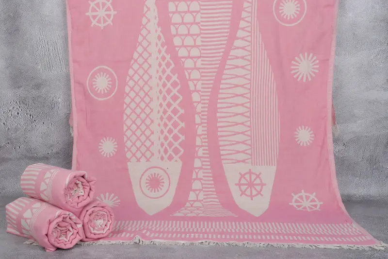 Türkisches Strandtuch mit rosa Fischmuster, 38 x 69 Zoll