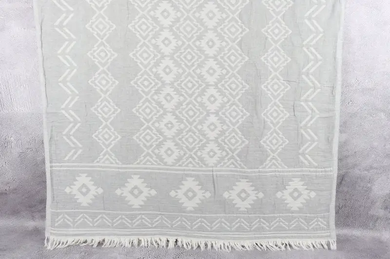 Strandtuch aus türkischer Baumwolle, hellgrau, geometrisch, 101,6 x 180 cm