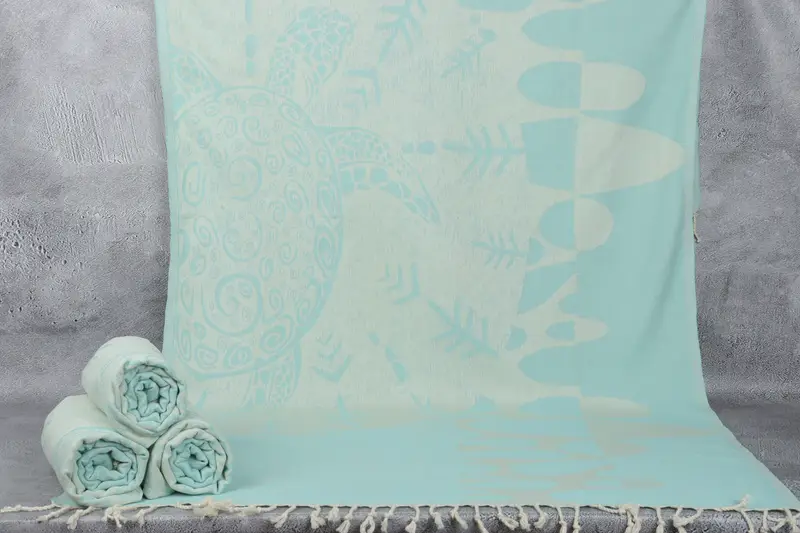 Umweltfreundliche Premium-Baumwollfasern aus der Türkei, die für ihre Saugfähigkeit bekannt sind, sind ein wesentlicher Bestandteil der Zusammensetzung des Strandtuchs. Diese Handtücher werden mit Präzision von Hand gewebt, um eine einheitliche Produktion zu gewährleisten. Das Ergebnis sind Handtücher mit leichten Abweichungen innerhalb einer Toleranz von 2 Zoll oder 5 cm.