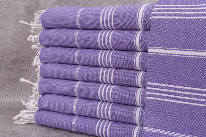 Türkische Handtücher zeichnen sich durch ihre Zusammensetzung aus Bio-Baumwolle aus, die eine hervorragende Saugfähigkeit und Komfort gewährleistet. Jedes Handtuch ist sorgfältig gewebt, was zu Abmessungen von 40 x 71 Zoll oder 100 x 180 Zentimetern mit einer zulässigen Toleranz von 2 Zoll oder 5 cm führt. Mit einem Gewicht von 265 Gramm bieten diese Handtücher ein Gleichgewicht aus Leichtigkeit und Haltbarkeit.