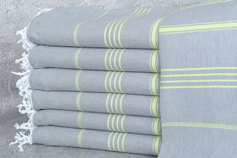 Diese aus umweltfreundlicher türkischer Premium-Baumwolle gefertigten Handtücher weisen eine starke Saugfähigkeit auf und sorgen für einen effektiven Feuchtigkeitstransport. Ihre Abmessungen betragen 40 x 71 Zoll bzw. 100 x 180 Zentimeter und ihr Gewicht beträgt 260 Gramm. Dadurch entsteht ein ausgewogenes Verhältnis von Haltbarkeit und Komfort. Die Handwebtoleranzen können um bis zu 2 Zoll oder 5 Zentimeter variieren.
