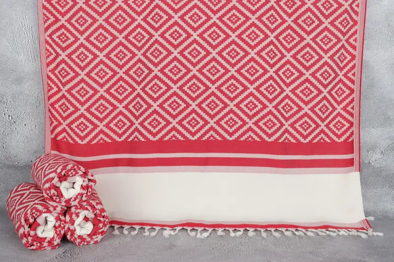 Die Handtücher bestehen aus umweltfreundlicher türkischer Premium-Baumwolle und sorgen für optimale Saugfähigkeit und Haltbarkeit. Gekennzeichnet durch eine Größe von 36 x 69 Zoll oder 90 x 175 Zentimetern, wiegt jedes Stück 420 Gramm. Toleranzen im Webprozess können zu geringfügigen Abweichungen von bis zu 5 Zentimetern führen.