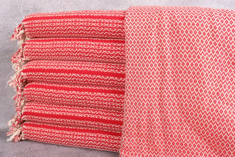 Handtücher aus türkischer Bio-Baumwolle, die in einer speziellen Werkstatt entworfen und hergestellt wurden, sind für ihre hervorragende Saugfähigkeit bekannt. Diese Handtücher haben die Maße 40 x 71 Zoll bzw. 100 x 180 Zentimeter und wiegen etwa 400 Gramm. Handwebtoleranzen stellen sicher, dass jedes Stück um 2 Zoll oder 5 Zentimeter variieren kann.