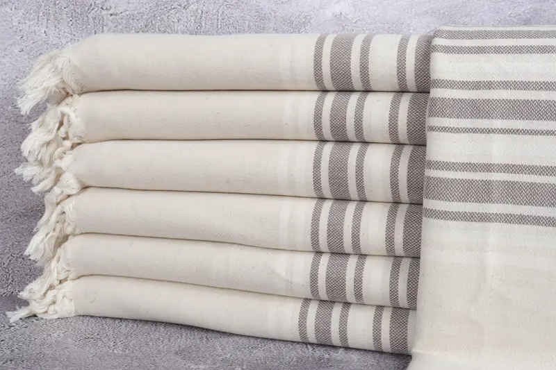 Um sorgfältige Handwerkskunst zu gewährleisten, verfügt jedes türkische Handtuch über präzise Maße und eine Gewichtsangabe. Die gewebte Konstruktion ermöglicht einen Toleranzbereich in der Größe. Diese Eigenschaft trägt zur Variabilität der Produkteinheitlichkeit bei.