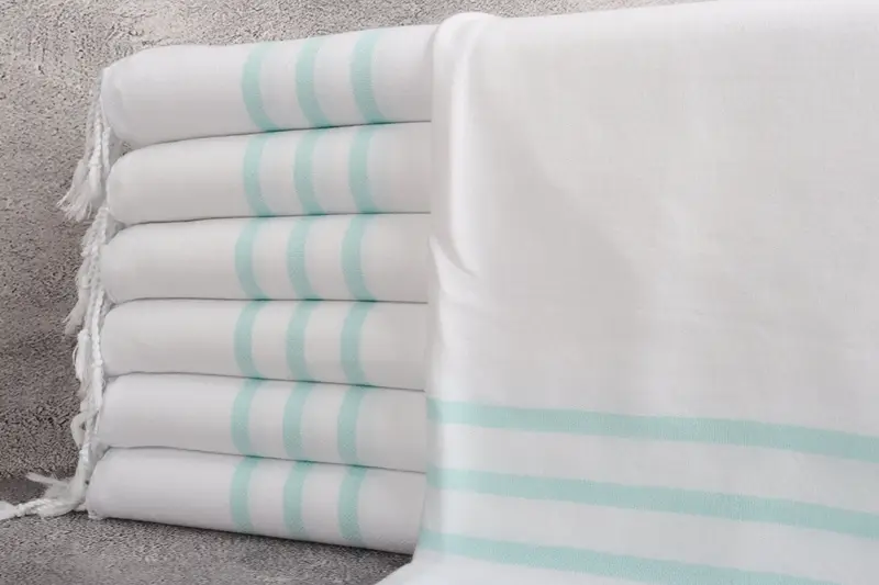 Diese Handtücher bestehen aus umweltfreundlicher türkischer Premium-Baumwolle und gewährleisten eine hohe Saugfähigkeit und Haltbarkeit. Diese Handtücher zeichnen sich durch ihre Abmessungen von 24 x 40 Zoll (60 x 100 cm) und ein Gewicht von 150 Gramm aus und werden sorgfältig handgewebt, mit einer Toleranz von ±2 Zoll (±5 cm).