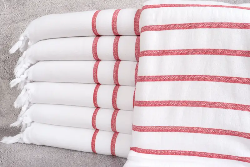 Hochwertige türkische Baumwolle prägt den Stoff dieses Handtuchs und sorgt für außergewöhnliche Saugfähigkeit und Vielseitigkeit. Das Handtuch wiegt 430 Gramm und hat die Maße 40x63 Zoll bzw. 100x160 Zentimeter. Beim Handweben gilt eine Toleranz von 2 Zoll oder 5 Zentimetern.