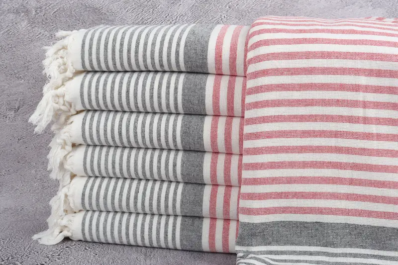 Umweltfreundliche Materialien gewährleisten die erstklassige Qualität der türkischen Handtücher. Diese Artikel werden sorgfältig aus türkischer Bio-Baumwolle gefertigt und zeichnen sich durch hohe Saugfähigkeit und Haltbarkeit aus. Daraus ergeben sich Abmessungen von 38 x 67 Zoll bzw. 95 x 170 Zentimetern, jedes Stück hat ein Gewicht von 430 Gramm, mit zulässigen Webtoleranzen von bis zu 2 Zoll bzw. 5 Zentimetern.