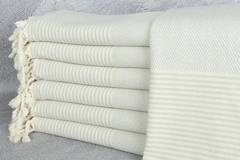 Monogrammiertes Bachelorette-Handtuch, hellgrau gestreift, 36 x 71 Zoll