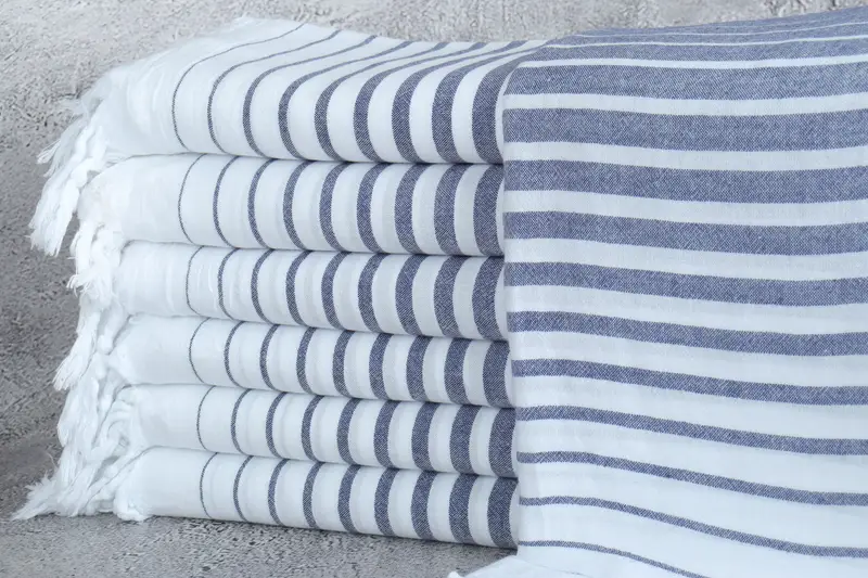 Türkisches Handtuch Marineblau gestreift 36x67 Zoll, Handtuch, Babydecke Beige
