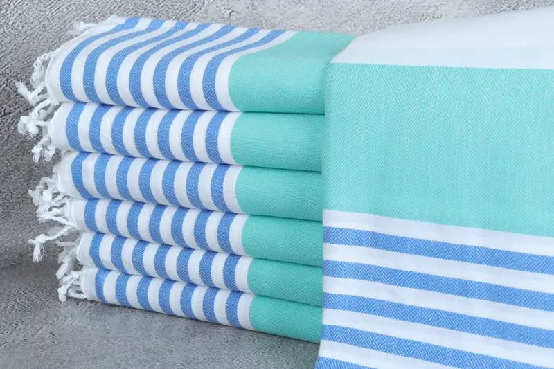 Türkisches Badetuch, Petrolgrün-Sachsblau gestreift, Bio-Baumwolle, 40 x 71 Zoll