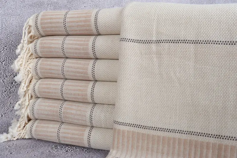 Strandtuch aus türkischer Baumwolle, beige gestreift, 40 x 71 Zoll