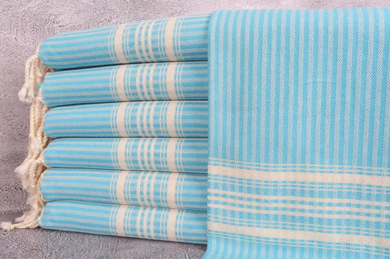 Gesichtshandtuch aus türkischer Baumwolle, türkis, beige gestreift, 18 x 40 Zoll