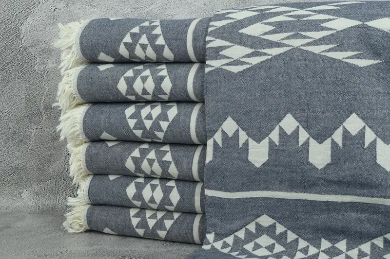 Tagesdecke, geometrischer Überwurf, Überwurf aus roher, marineblauer Baumwolle, 60 x 71 Zoll