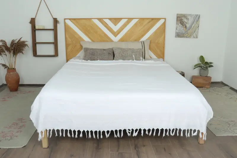 Türkische Tagesdecke, Hochzeitsgeschenkdecke, Weiß, Beige, 71 x 91 Zoll