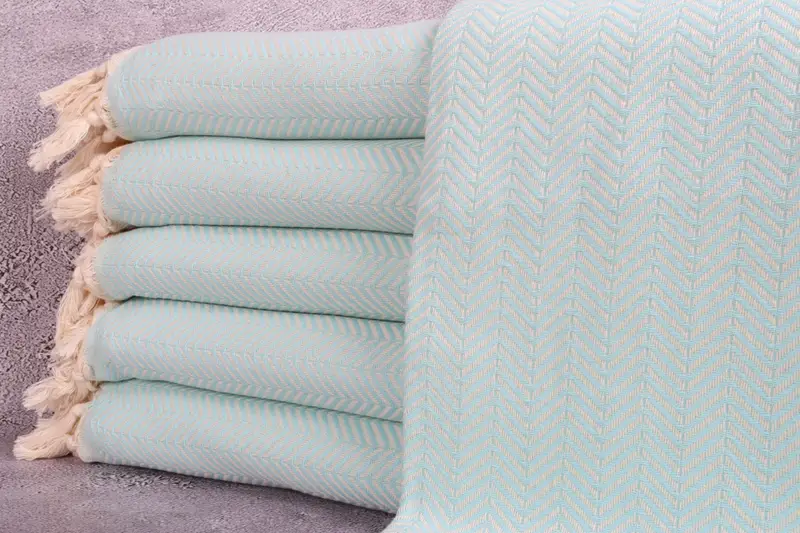 Picknickdecke, türkische Baumwolle, beige Chevron, 75 x 91 Zoll