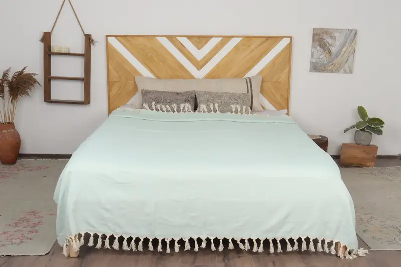 Maßgeschneiderte türkische Decke in Beige mit Fischgrätenmuster, 79 x 99 Zoll