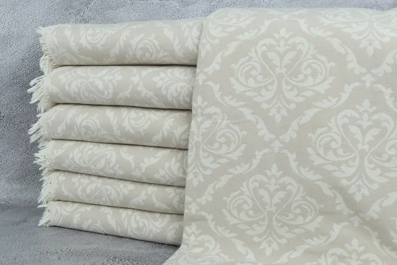 Individuelle Hochzeitsgeschenke, Barock-Design-Überwurf, beige Baumwolldecke, 103 x 107 Zoll