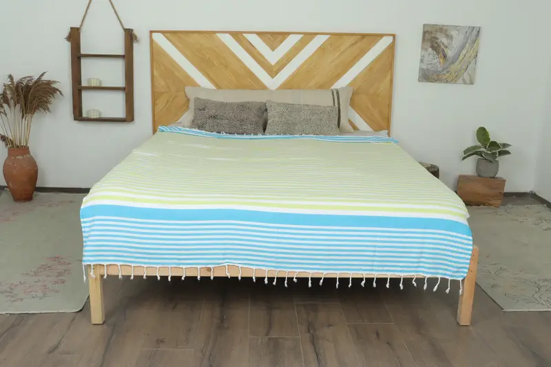 Couch-Überwurf, Bettüberwurf, grün-blau gestreifte Decke, 160 x 210 cm