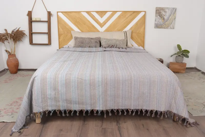 Home Decor Hellgrau gestreifter Überwurf, 87 x 91 Zoll