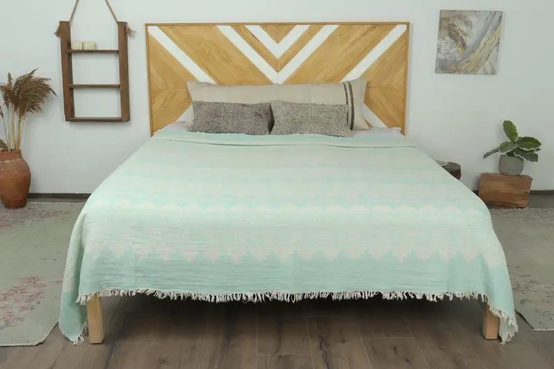 Stranddecke, mintfarbener Kelim-Überwurf, 79 x 91 Zoll, Beige, Bio-Baumwolle